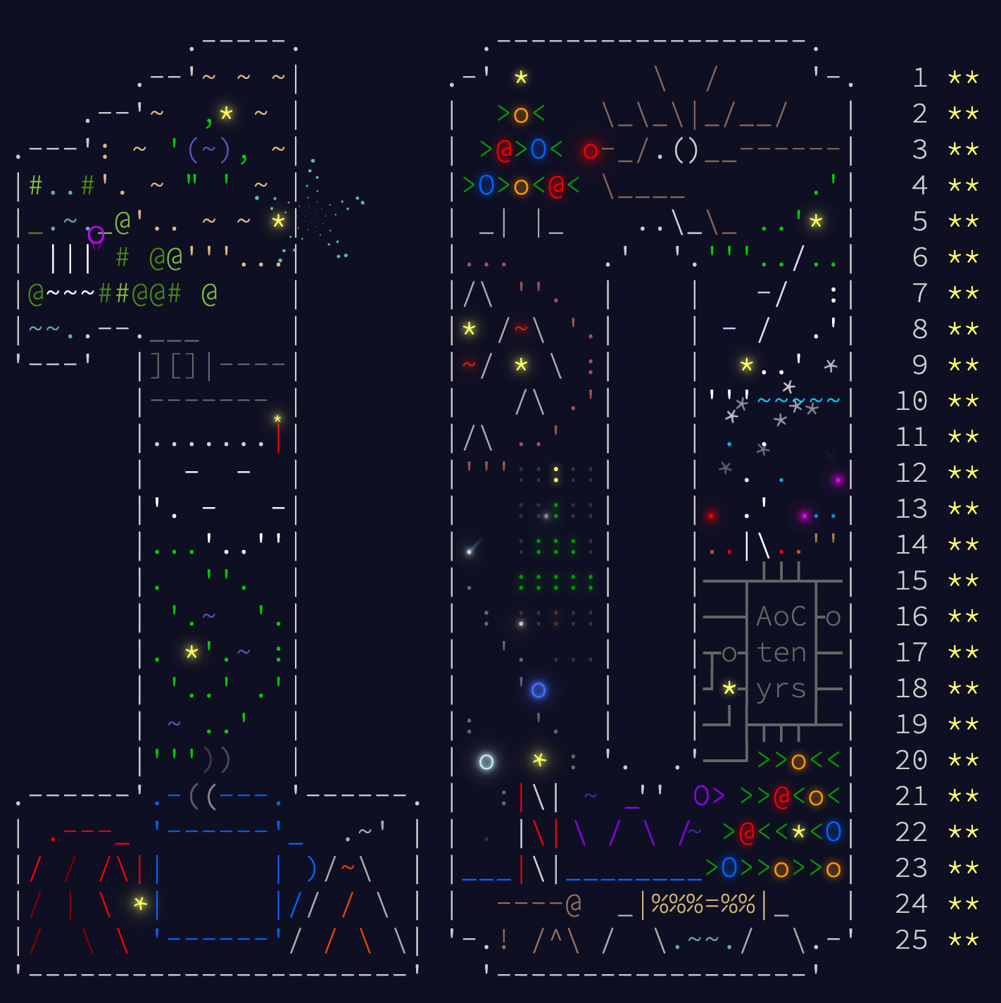 Most AoC puzzles were fun, but some stirred more profound experiences: aesthetic appreciation, struggle, and the exhilaration of finally cracking the code. This section describes solutions to three puzzles.
